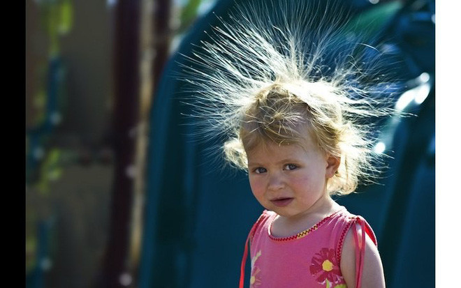 Tóc cũng dễ sinh ra tĩnh điện, dựng ngược lên khi thời tiết hanh khô, thiếu độ ẩm vào mùa đông. Bạn có thể thấy vào mùa đông, mỗi lần bỏ mũ hoặc cởi áo len, áo khoác ra, sẽ thấy những tiếng nổ tanh tách, hay tóc sẽ dựng đứng lên.